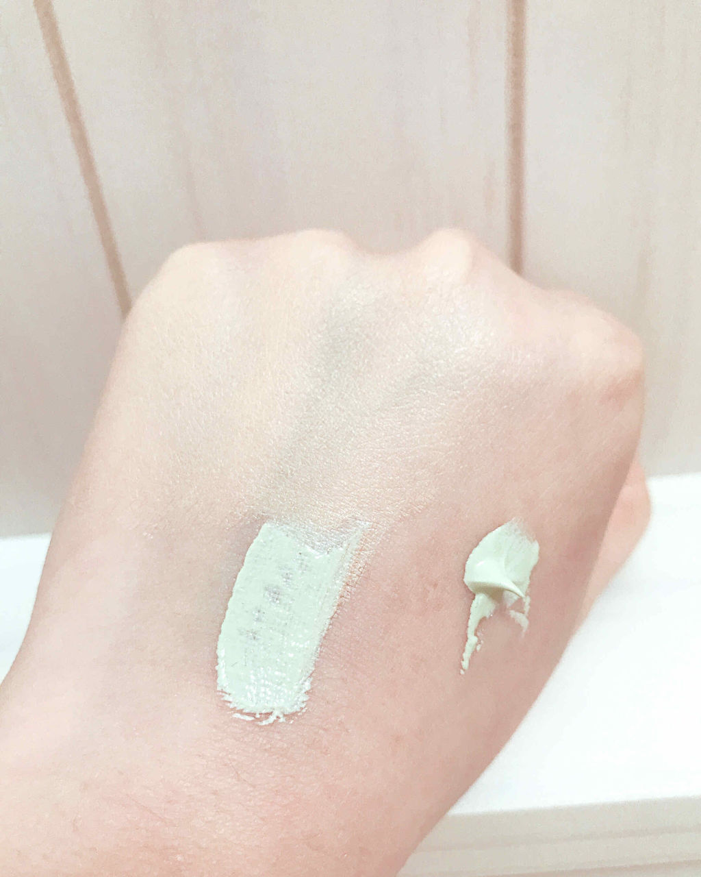 - 赤みをきちんとカバーするスキンケア兼用下地。緑色のクリームが肌でベージュ色に変化し、ニキビ跡やくすみをカバーします。