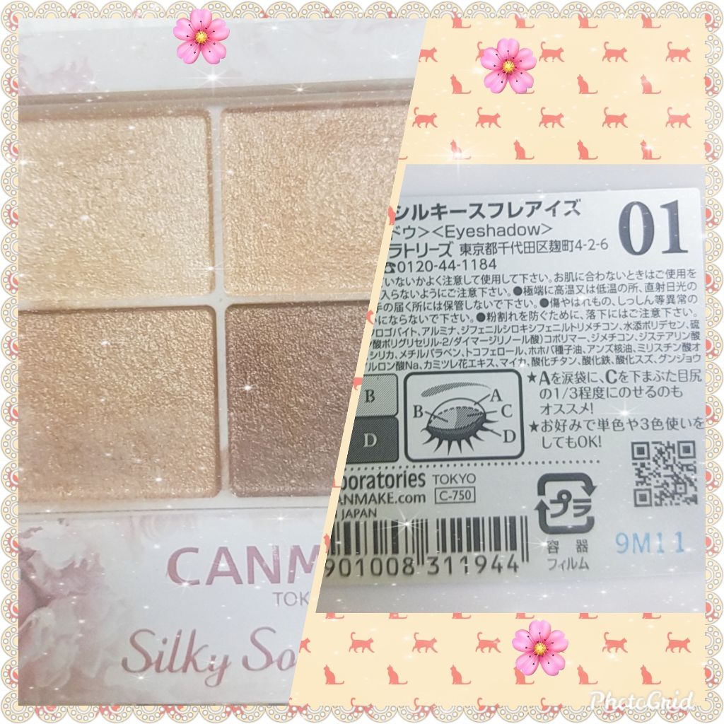キャンメイクシルキースフレアイズマットタイプM04キューピッドペタル¥825◇質感(マット3、小粒ラメ1)質感はマットですがふわっとしていて透け感があるので色を重ねても重くなったり濁ったりしないのが特徴です◎ラメは小粒ですが思った以上にキラッ...