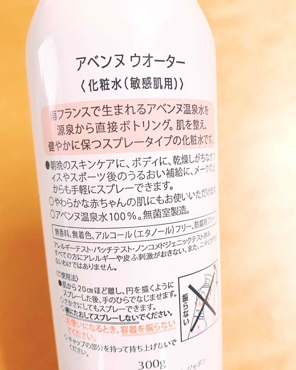 - 肌にいい水、アベンヌ温泉水100%。 肌をやわらげ、みずみずしくなめらかにし、敏感な肌をやさしく落ちつかせます。 使いやすいスプレータイプの化粧水。 ~こんなとき、こんな方におすすめ~ ●洗顔後・毎日のお手入れに ●敏感肌をはじめ肌あれ・乾燥肌~オイリー肌など、すべての肌タイプ ●化粧水の前に、プレ化粧水として ●年齢性別を問わずすべての方に ●赤ちゃん(生後3ヵ月~)のデリケートな肌のお手入れに ●外出や旅先でのお手入れに ●乾燥しがちな機内やホテルでの水分補給に ●脱毛・脱色後のデリケートな肌に 無菌室製造/無香料/無着色/アルコール(エタノール)フリー/防腐剤フリー/アレルギーテスト・パッチテスト・ノンコメドジェニックテスト済み ※すべての方にアレルギーや皮ふ刺激がおきない、また、ニキビができないわけではありません。 ※2024年9月より順次パッケージリニューアル