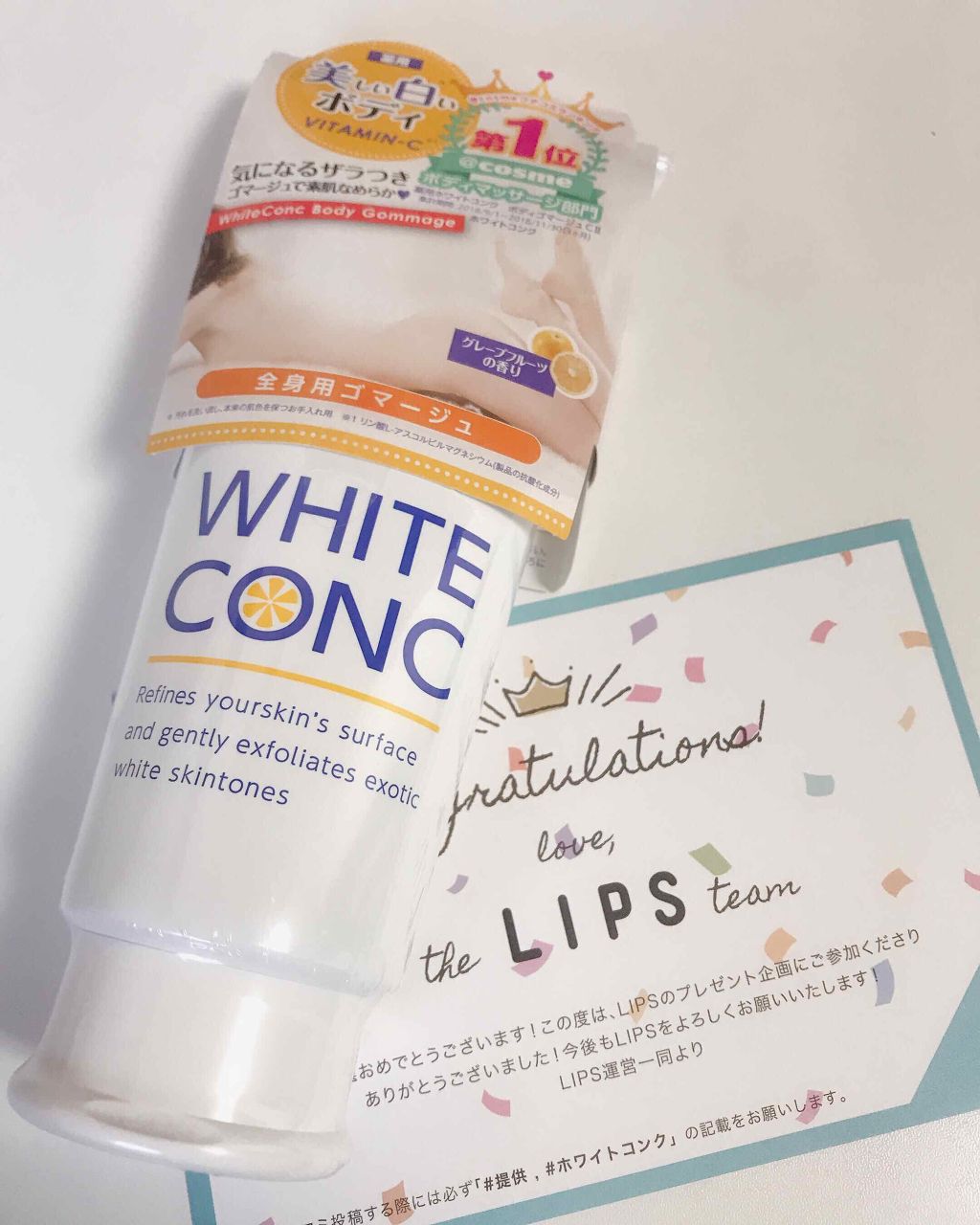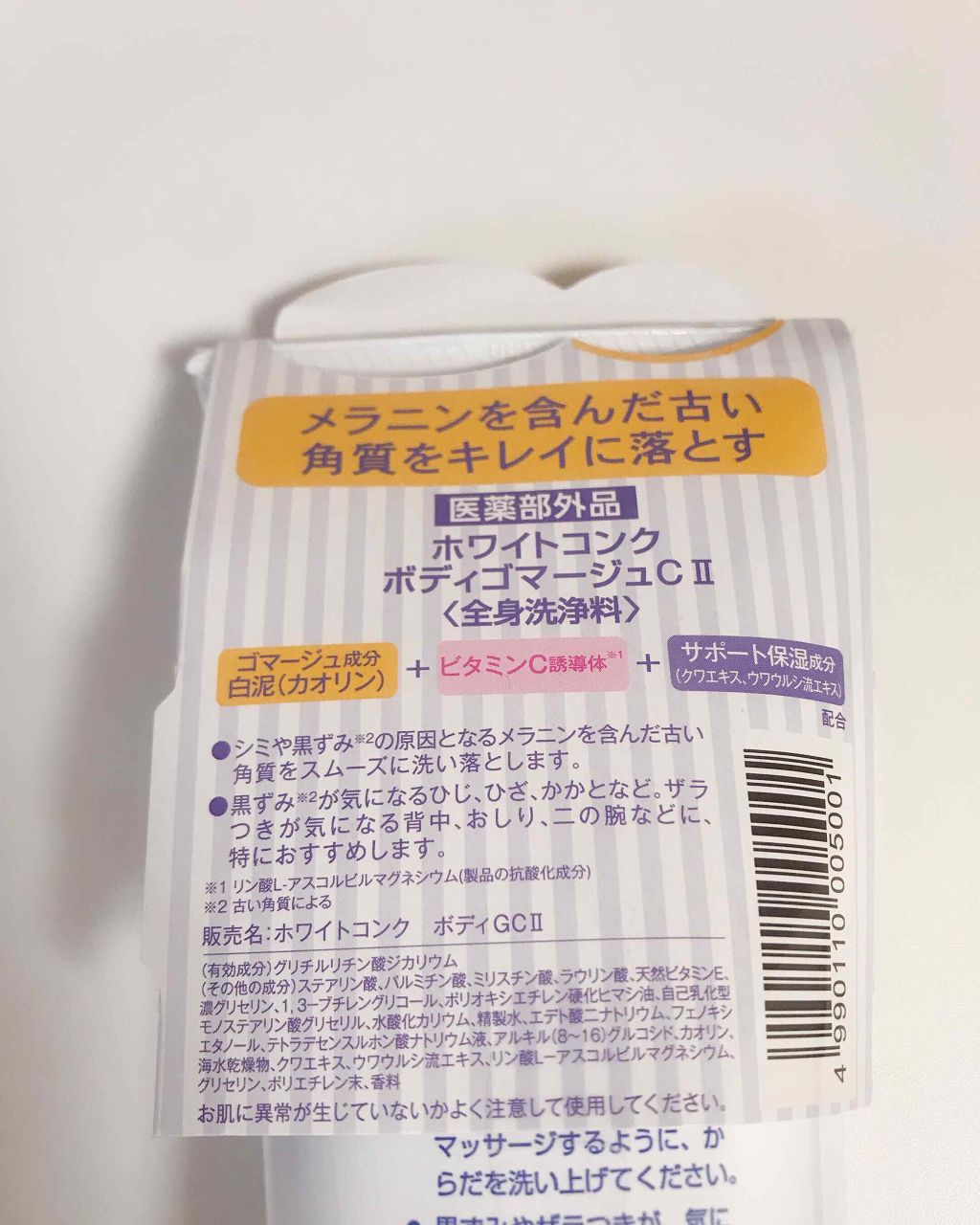 \この夏のボディケアに/ホワイトコンク薬用ホワイトコンクボディゴマージュCII先日プラザでお買い物した時にミニサイズを頂いたので投稿するよ気になるザラつきをなめらかにする薬用ボディスクラブ・肌をいたわりながら黒ずみ※1ケア・ゴマージュ成分(白...