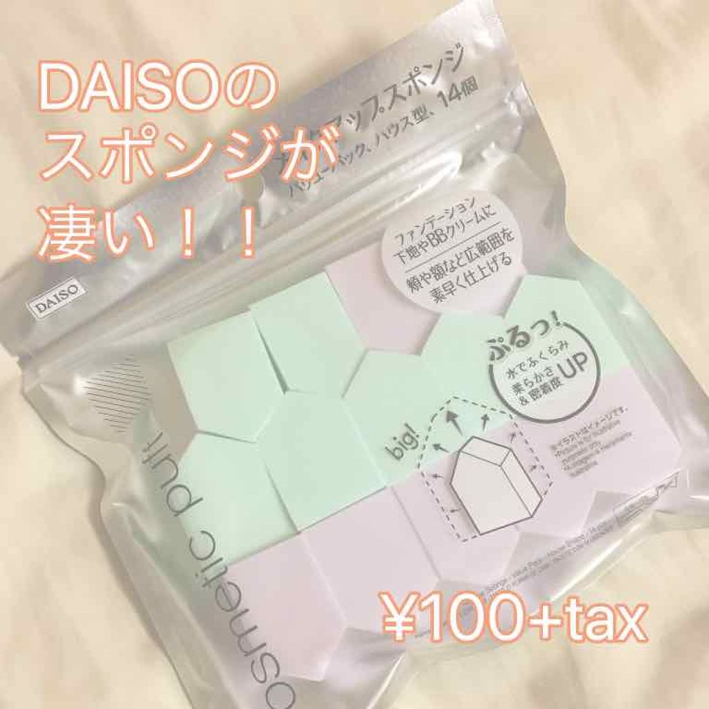 【使った商品】DAISOメイクアップスポンジ【商品の特徴】メイクアップスポンジ【使用感】もちもち【良いところ】水ありも使える【イマイチなところ】なし【どんな人におすすめ?】安いスポンジを探してる人【使い方】水を含ませてしぼってメイクをなじませ...