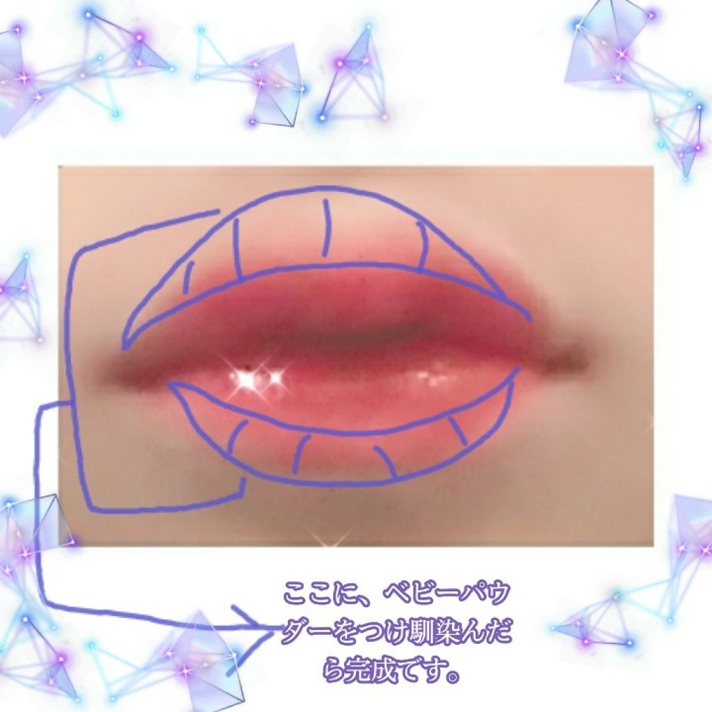 簡単グラデーションのしかた、1~唇に、リップクリームを塗って保湿します。2~次に全体に薄いリップを塗って馴染ませます。3~唇の真ん中よりだたぐらいのところまで、さっき塗ったリップより濃いリップを塗ります。4~それより中心にもっともっと濃いリッ...