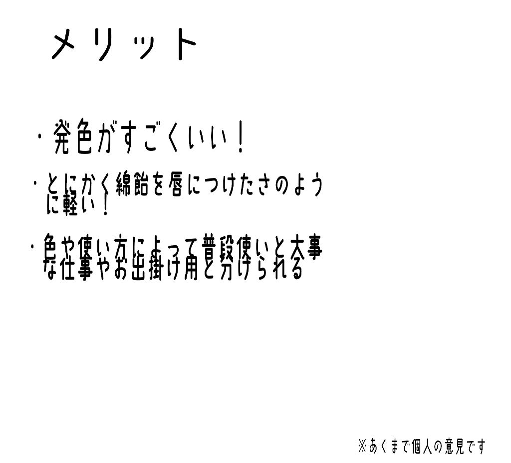 | スフレみたいな塗り心地♡一本で済ませられて色持ちも良くて香りも好み♪ | 詳細を見る | |