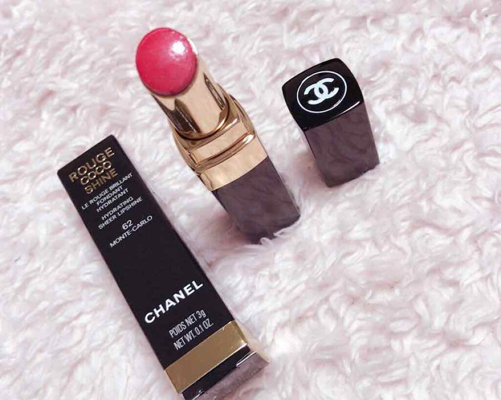 CHANELのルージュココシャイン♡ラメが入ってて可愛らしい色ですごくナチュラルです♬店員さんによるとこのシリーズで62番は若い人に1番人気の色らしいです(´・ω・`)ノ...