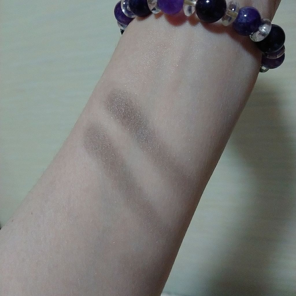 #えりぃのスウォッチです!#ケイト#KATE#3DプロデュースシャドウPU-1#ムーディーエクステンション1540円ピンク味の強いパープル。ラメは大粒なので目元以外には使えなさそう。粉質やラメ感が良くて、さすがケイト!肌なじみが良いのに、目元...