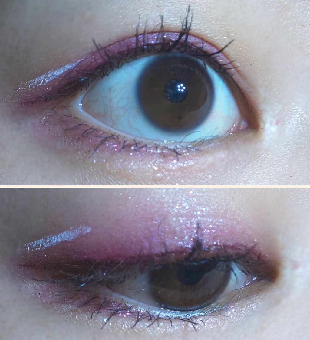 周りと差がつく(!?)ライブ映えパープルメイクインテグレートジェルライナーの白雪姫のパープル(残念ながら限定…)で目尻と二重を繋げるようにラインを描いて、下まぶたの目尻から3分の1くらいまでがっつりラインひいてます!これもカラーライナーだから...