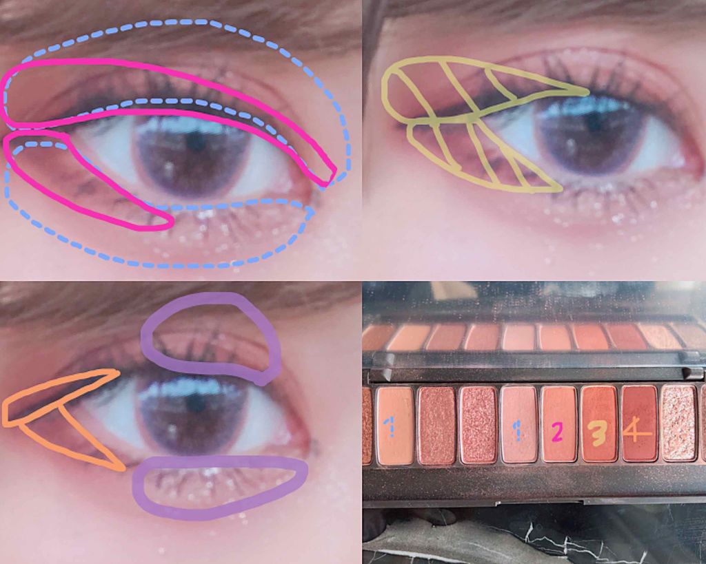 ☆ETUDEプレイカラーアイシャドウカフェインホリック生産終了エチュードハウス時代の遺物(笑)今回は左から5番目のマットなくすみピンクを二重幅より少し広めに塗り、左から4番目のシマーなピンクを二重幅に塗ってみました。5番目のカラーはアイホール...