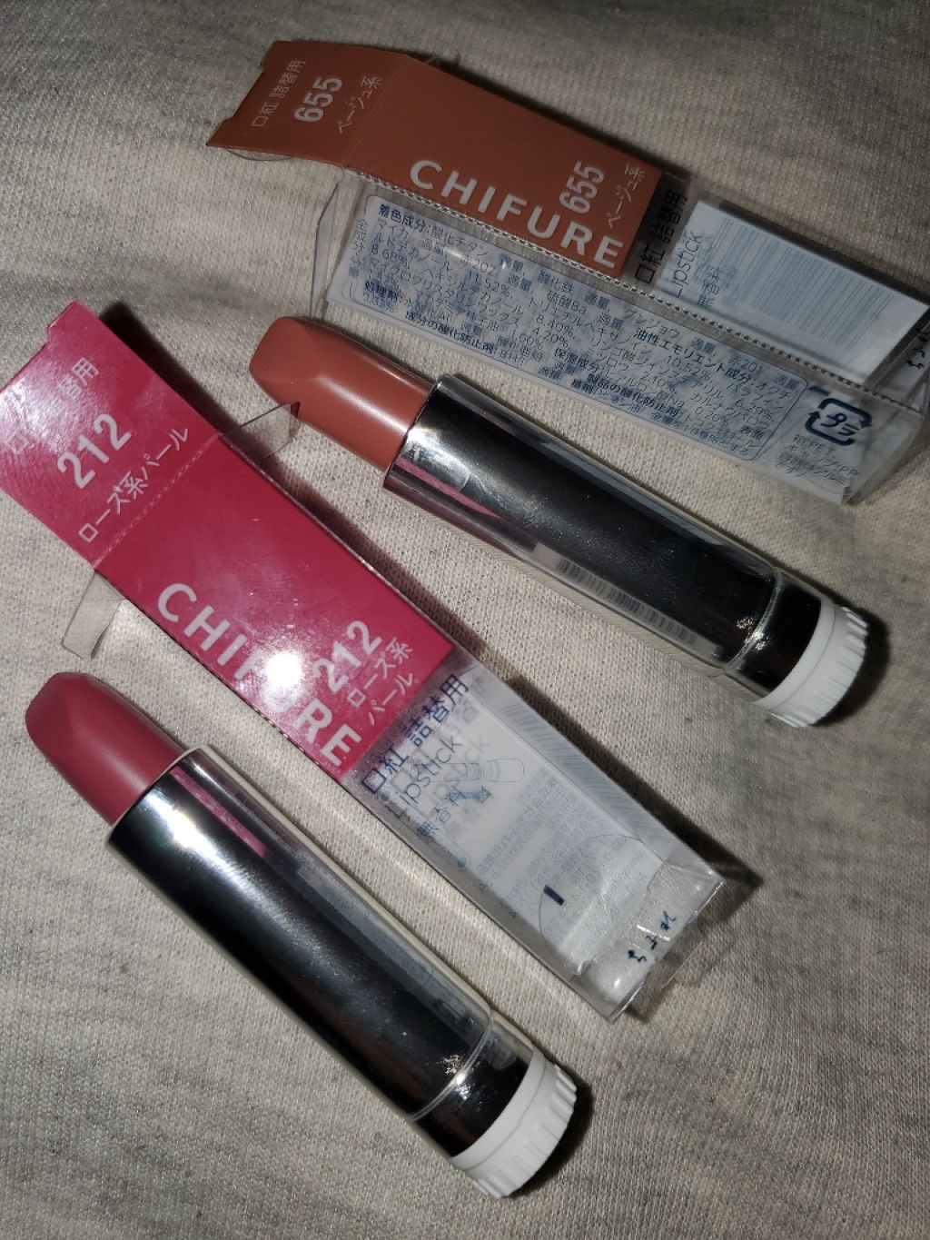 ちふれ 口紅詰め替え用ベージュ系 655ローズパール系 212を、衝動買いしました。手に塗ってみていいな!と思ったので即購入して、帰ってきて唇にぬってみて、ちょっと発色よくないかな?と思ったのですが、お値段が安いので、そんなもんかな。でも、普...