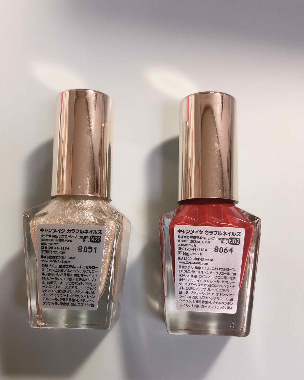 - <N02 シックボルドー> 酢酸ブチル、酢酸エチル、ニトロセルロース、(アジピン酸/ネオペンチルグリコール/無水トリメリト酸)コポリマー、クエン酸アセチルトリブチル、イソプロパノール、アクリレーツコポリマー、ステアラルコニウムベントナイト、酸化鉄、ブタノール、オキシベンゾン-1、シリカ、赤220、ジアセトンアルコール、酸化チタン、リン酸、カーボンブラック、ジ安息香酸トリメチルペンタンジイル、黄4、赤226 [旧]酢酸ブチル、酢酸エチル、ニトロセルロース、(アジピン酸/ネオペンチルグリコール/無水トリメリト酸)コポリマー、クエン酸アセチルトリブチル、イソプロパノール、アクリレーツコポリマー、ステアラルコニウムベントナイト、(スチレン/アクリレーツ)コポリマー、酸化鉄、ブタノール、シリカ、オキシベンゾン-1、赤220、ジアセトンアルコール、酸化チタン、ジ安息香酸トリメチルペンタンジイル、リン酸、カーボンブラック、黄4 <N08 ミスティモーヴ> 酢酸ブチル、酢酸エチル、ニトロセルロース、(アジピン酸/ネオペンチルグリコール/無水トリメリト酸)コポリマー、クエン酸アセチルトリブチル、イソプロパノール、アクリレーツコポリマー、ステアラルコニウムベントナイト、酸化チタン、ブタノール、シリカ、オキシベンゾン-1、マンガンバイオレット、ジアセトンアルコール、酸化鉄、赤226、リン酸、カオリン、ジ安息香酸トリメチルペンタンジイル、黄4 [旧] 酢酸ブチル、酢酸エチル、ニトロセルロース、(アジピン酸/ネオペンチルグリコール/無水トリメリト酸)コポリマー、クエン酸アセチルトリブチル、イソプロパノール、アクリレーツコポリマー、ステアラルコニウムベントナイト、(スチレン/アクリレーツ)コポリマー、酸化チタン、ブタノール、オキシベンゾン-1、シリカ、酸化鉄、ジアセトンアルコール、マンガンバイオレット、ジ安息香酸トリメチルペンタンジイル、リン酸、カーボンブラック、黄4 <N10 ペールラベンダー> 酢酸ブチル、酢酸エチル、ニトロセルロース、(アジピン酸/ネオペンチルグリコール/無水トリメリト酸)コポリマー、クエン酸アセチルトリブチル、イソプロパノール、アクリレーツコポリマー、ステアラルコニウムベントナイト、酸化チタン、ブタノール、酸化鉄、オキシベンゾン-1、シリカ、ジアセトンアルコール、マンガンバイオレット、リン酸、ジ安息香酸トリメチルペンタンジイル、黄4、赤226 [旧]酢酸ブチル、酢酸エチル、ニトロセルロース、(アジピン酸/ネオペンチルグリコール/無水トリメリト酸)コポリマー、クエン酸アセチルトリブチル、イソプロパノール、アクリレーツコポリマー、ステアラルコニウムベントナイト、酸化チタン、ブタノール、シリカ、オキシベンゾン-1、ジアセトンアルコール、酸化鉄、ジ安息香酸トリメチルペンタンジイル、マンガンバイオレット、リン酸、黄4 <N12 アーモンドグリーン> 酢酸ブチル、酢酸エチル、ニトロセルロース、(アジピン酸/ネオペンチルグリコール/無水トリメリト酸)コポリマー、クエン酸アセチルトリブチル、イソプロパノール、アクリレーツコポリマー、ステアラルコニウムベントナイト、(スチレン/アクリレーツ)コポリマー、酸化チタン、ブタノール、シリカ、オキシベンゾン-1、ジアセトンアルコール、ジ安息香酸トリメチルペンタンジイル、黄4、カーボンブラック、リン酸、コンジョウ <N16 ココア> 酢酸ブチル、酢酸エチル、ニトロセルロース、(アジピン酸/ネオペンチルグリコール/無水トリメリト酸)コポリマー、クエン酸アセチルトリブチル、イソプロパノール、酸化チタン、アクリレーツコポリマー、ステアラルコニウムベントナイト、酸化鉄、ブタノール、シリカ、オキシベンゾン-1、ジアセトンアルコール、黄4、リン酸、ジ安息香酸トリメチルペンタンジイル、カーボンブラック、赤226 [旧]酢酸ブチル、酢酸エチル、ニトロセルロース、(アジピン酸/ネオペンチルグリコール/無水トリメリト酸)コポリマー、クエン酸アセチルトリブチル、イソプロパノール、酸化チタン、アクリレーツコポリマー、ステアラルコニウムベントナイト、ブタノール、酸化鉄、シリカ、オキシベンゾン-1、ジアセトンアルコール、ジ安息香酸トリメチルペンタンジイル、黄4、リン酸、カーボンブラック <N17 クリームチャイ> 酢酸ブチル、酢酸エチル、ニトロセルロース、(アジピン酸/ネオペンチルグリコール/無水トリメリト酸)コポリマー、クエン酸アセチルトリブチル、イソプロパノール、アクリレーツコポリマー、ステアラルコニウムベントナイト、(スチレン/アクリレーツ)コポリマー、酸化チタン、ブタノール、シリカ、オキシベンゾン-1、ジアセトンアルコール、ジ安息香酸トリメチルペンタンジイル、酸化鉄、リン酸、黄4、カーボンブラック <N19 スウィートコーラル> 酢酸ブチル、酢酸エチル、ニトロセルロース、(アジピン酸/ネオペンチルグリコール/無水トリメリト酸)コポリマー、クエン酸アセチ
