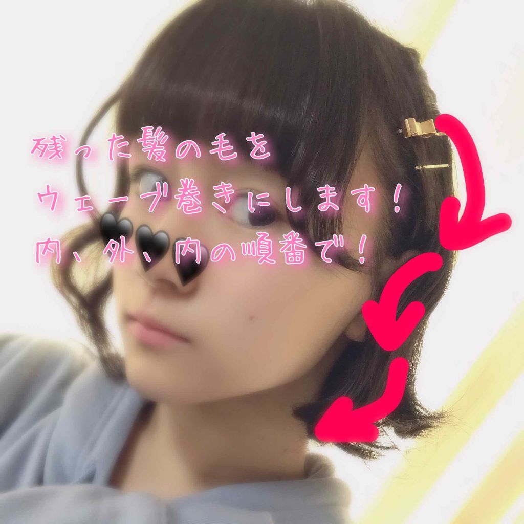 【可愛いショートのヘアアレンジ方法🍒】ショートのヘアアレンジって、難しいと思ってませんか!?手軽にゆるふわ女子に慣れちゃうヘアアレンジ方法を紹介します!まず、触覚の先端部分だけを内巻きにします、この時、前髪も巻きたくなりますが、黒髪で重めのぱ...