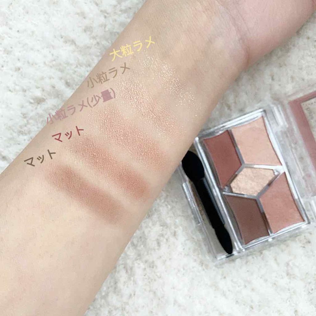 - ラメ・パールは控えめ、しっとり密着して高発色の5色アイシャドウ。1色は上からトッピングできるラメパウダー。ナチュラルスタイルと華やかスタイルを2パターン楽しめるカラーバリエーションです。
