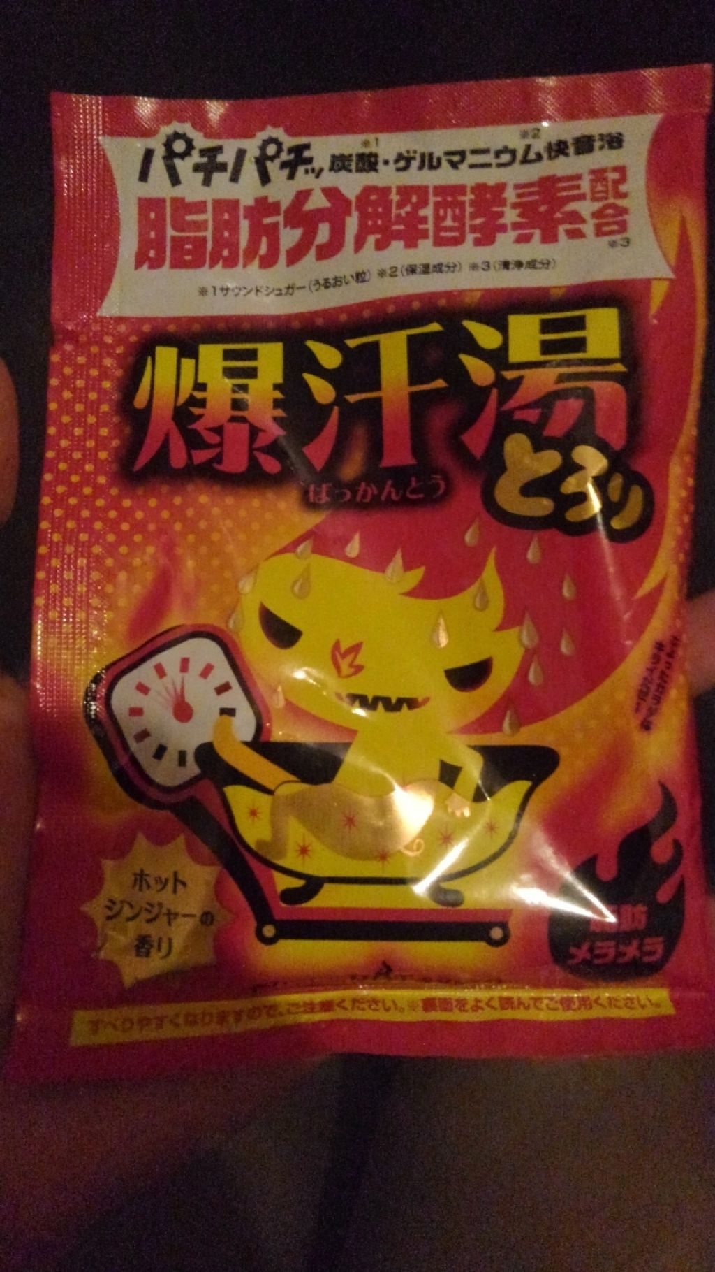 爆汗湯ホットジンジャーの香りこういう入浴剤気になりつつ初めて使った!!お湯の中に入れるとめっちゃパチパチ音がなる😳しばらくパチパチなってました!お湯にとろみが出るんですけどこれが思ってたとろみじゃなくてちょっとびっくり笑お湯がとろ〜ねろ〜って...
