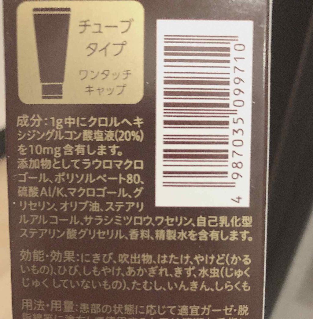 - <11gチューブ> グリセリン、香料、ワセリン、ステアリルアルコール、精製水、ポリソルベート80、オリブ油、サラシミツロウ、マクロゴール、クロルヘキシジングルコン酸塩液(20%)、ラウロマクロゴール、硫酸Al/K、自己乳化型ステアリン酸グリセリル <50gチューブ> グリセリン、香料、ワセリン、ステアリルアルコール、精製水、ポリソルベート80、オリブ油、サラシミツロウ、マクロゴール、クロルヘキシジングルコン酸塩液(20%)、ラウロマクロゴール、硫酸Al/K、自己乳化型ステアリン酸グリセリル <30g瓶> グリセリン、香料、ワセリン、ステアリルアルコール、精製水、ポリソルベート80、オリブ油、サラシミツロウ、マクロゴール、クロルヘキシジングルコン酸塩液(20%)、ラウロマクロゴール、硫酸Al/K、自己乳化型ステアリン酸グリセリル <100g瓶> グリセリン、香料、ワセリン、ステアリルアルコール、精製水、ポリソルベート80、オリブ油、サラシミツロウ、マクロゴール、クロルヘキシジングルコン酸塩液(20%)、ラウロマクロゴール、硫酸Al/K、自己乳化型ステアリン酸グリセリル <250g瓶> グリセリン、香料、ワセリン、ステアリルアルコール、精製水、ポリソルベート80、オリブ油、サラシミツロウ、マクロゴール、クロルヘキシジングルコン酸塩液(20%)、ラウロマクロゴール、硫酸Al/K、自己乳化型ステアリン酸グリセリル