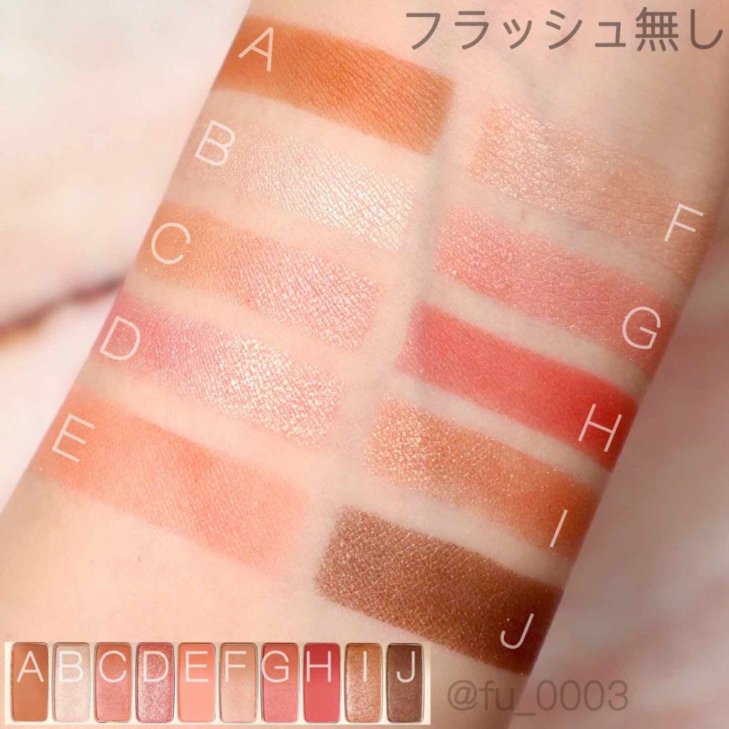 - 肌なじみの良い、鮮やかな発色で目元を華やかに彩る捨て色なしの10色アイシャドウパレット 異なる3種のテクスチャーを自由に組み合わせて、グラデーションも思いのままに。 NEW 2023.4 ・肌トーンにあう配色を詰め込んだトレンドカラー 肌トーンに合わせて、自分に似合うトレンドカラーが楽しめる♡ パーソナルカラー×トレンドカラーの掛け合わせパレットで、デイリーメイクもスペシャルメイクも気分にあわせてなりたい自分に! ・むにゅっとジェル質感ラメで高密着、煌めく目元 パレットの中でもポイントとなる大きめ粒子のラメは、ジェルのような新質感で落ちにくく肌にぴったりと密着します。キラキラとした目元をキープします。 ・使うカラーは大きめに!リアル捨て色なしパレット ベースやラメのよく使うカラーと締め色や濃い色等の減りが少ないカラーを異なるサイズで詰め込んだ、リアル捨て色なしパレット! <使用方法> 付属のデュアルシャドウブラシでベースカラーをまぶた全体に塗り広げます。細いブラシでグラデーションや目尻、アイライン、涙袋などのポイントカラーをのせて仕上げます。