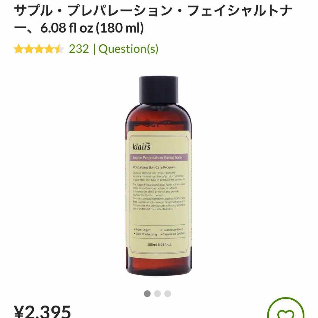 Klairs サプルプレパレーションフェイシャルトナー(180ml) | 2,300円 |