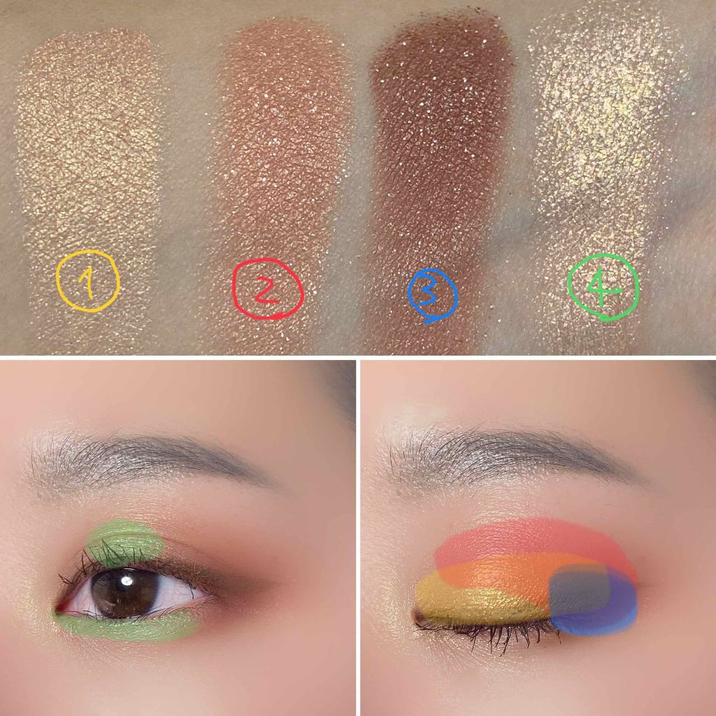 時と場所を選べるアイシャドウパレット🥰ベージュ系のアイシャドウなので、デイリーはもちろん、スッピンメイク、学校、お仕事、デート、パーティー……なんでもかんでも行けちゃう……🥺今回は派手目なアイメイクにしてみました🤗瞼中央のきらめき✨④のシャド...