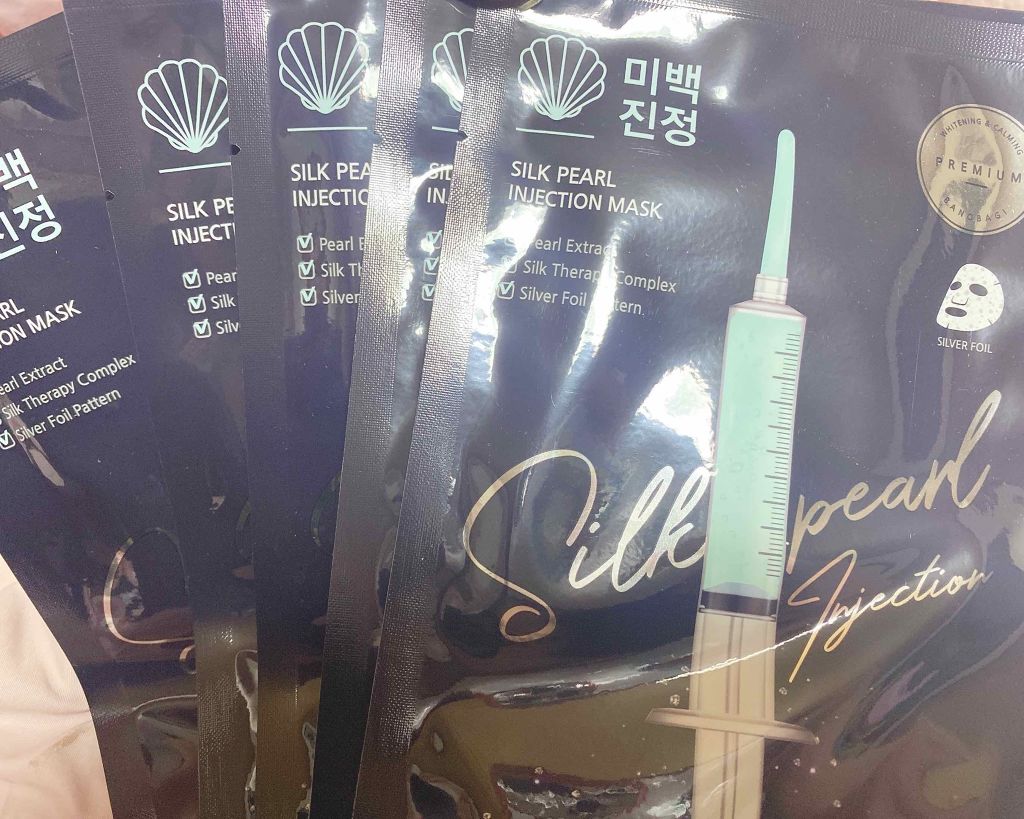BANOBAGI様からいただきました。シルクパールプレミアムインジェクションマスクを使ってみました。インパクトある銀箔シートで、キラキラしている面が表面です。特殊なシートが採用されていて美容液が乾燥しにくくなっているそうです。シートはやわらか...