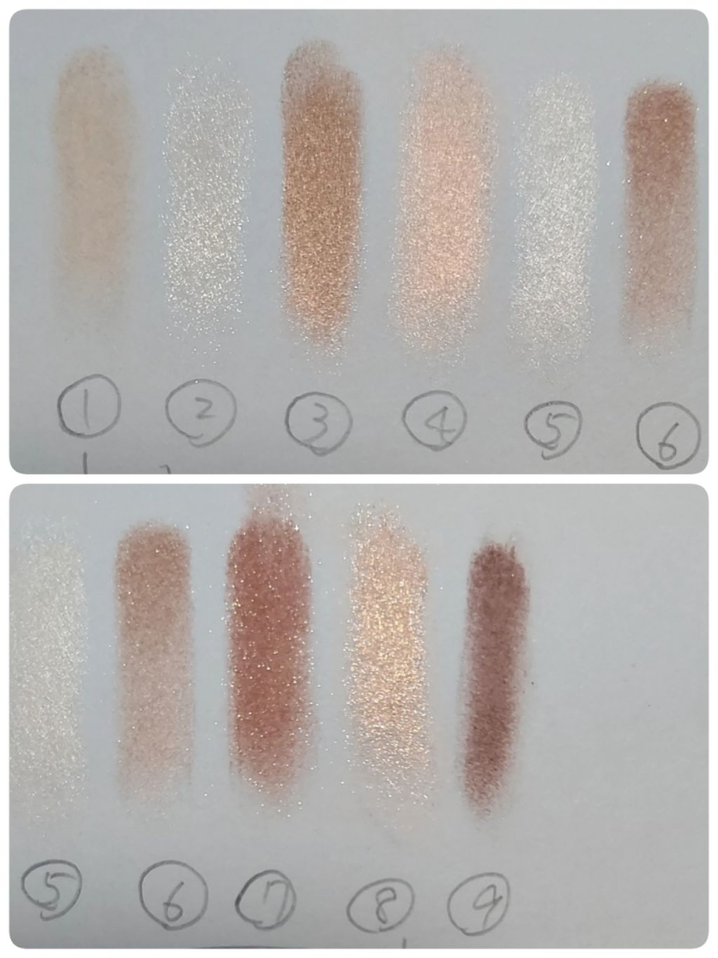 100円とは思えない発色の良さで、ラメが細かいものからグリッターまで色・質感が違うものが入っています イエベ向きの無難なブラウンで使いやすい🙆♀️ 全体的に粉飛び、崩れやすさがあるので、アイシャドウベースを使った方がいいと思います🦖⋆͛