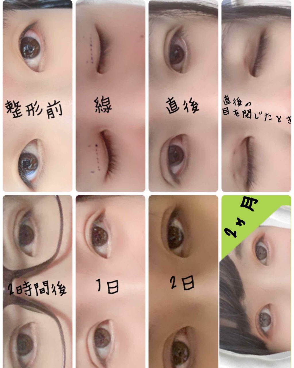 初めまして!コメント失礼します。 私も今スクエア二重術が気になっています。 そこで質問なのですが2ヶ月たった今傷痕は見えますか?また糸を止めた場所などは目立ちますか?
