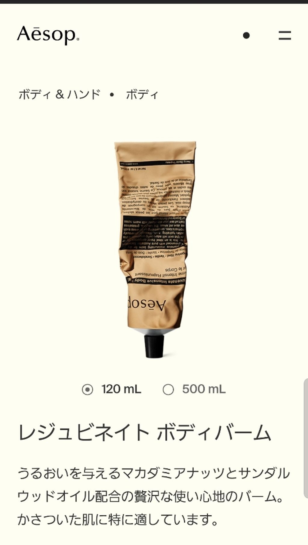 商品詳細情報Aesop レジュビネイド ボディバーム