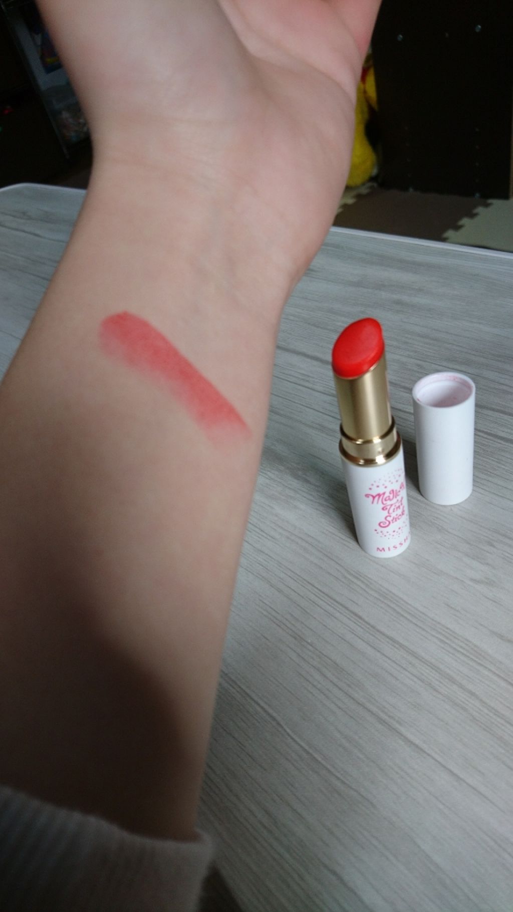 MISSHA(ミシャ)4月13日発売の新作‼︎マジカルティントスティック❤️お値段1200円(税別)4色展開✨私はベージュを選びました(^^)色は見た目よりもオレンジで🍊合わせやすい落ち着いた感じです♬◎良いところ◎見た目よりも発色が良く、唇...
