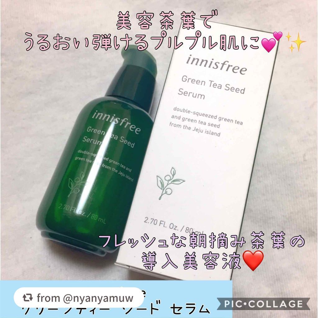 - グリーンティー成分*1が肌の内側*2からしっとりと潤いをチャージし、みずみずしく弾む肌へと導くブースターセラム ◆素早く潤いを満たすブースターセラム 洗顔後すぐの使用で、乾燥しがちな洗顔後の肌に潤いチャージ。みずみずしい潤いで満たし、次のスキンケア効果を高めるブースターセラムです。 ◆イニスフリーオリジナルの美容茶葉で乾燥知らずの理想の肌へ チェジュ島産有機栽培のオリジナル美容茶葉から独自のダブルスクイーズ製法で抽出したエキスを配合。保湿効果に優れた16種類のアミノ酸やミネラルが含まれたチャ葉エキスで、潤い肌へと導きます。 ◆デュアルモイスチャーライジングテクノロジー採用 グリーンティーウォーター*3が角層のすみずみまで素早く潤いで満たし、グリーンティーシードオイル*4の保湿ヴェールで潤いを逃さず包み込みます。これにより、理想的なモイスチャーバランスをキープし、いきいきとハリのある肌へと導きます。 *1 チャ葉エキス、チャ種子油 *2 角質層 *3 水、チャ葉エキス *4 チャ種子油