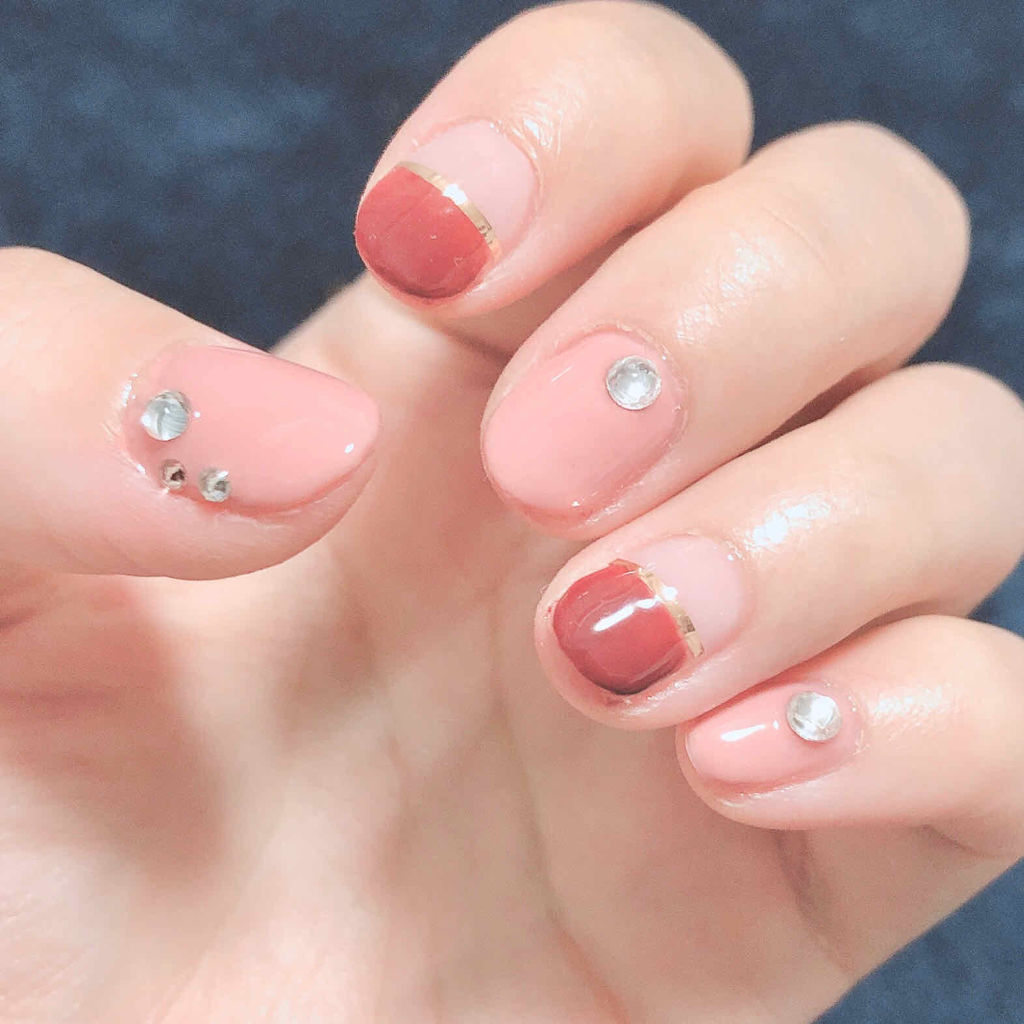 ズバリ秋ネイル!!これだけ!!メインカラーはMOMOジェルの46結局そこそこシンプルなのが好き^^#秋ネイル#セルフジェルネイル#MOMOジェル...