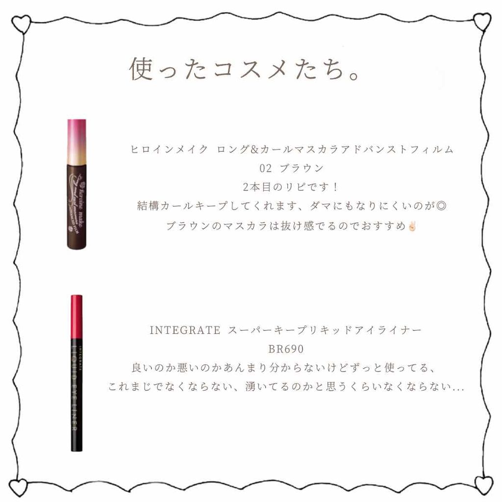 【私の肌質について】・脂性肌よりの混合肌・皮脂過多によるニキビができやすい(最近は頬の大人ニキビに悩まされてる😢)・少し敏感肌・肌はすぐ焼ける※詳しくは前の投稿をご覧下さい👀ヒロインメイクロングUPマスカラスーパーWPCOLOR:02ブラウン...
