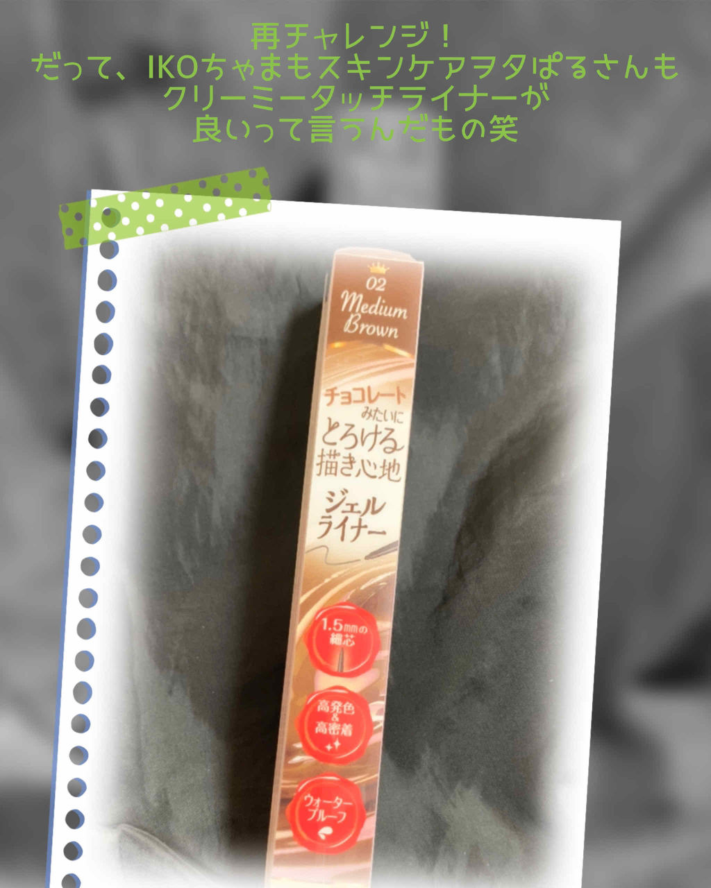 チョコレートにプラム果汁を混ぜたような、ナチュラルだけど抜け感のあるモーヴピンク。 このキャンメイクのライナーはやたらと滲まないと話題。 ほんまかいな?と思い、ちょっと実験させていただきました。 ズビズビ泣いた後に涙を拭っても、ティッシュにライナーの色がうっすらしか付いてきませんでした。 これは安心して泣けるライナーだ。