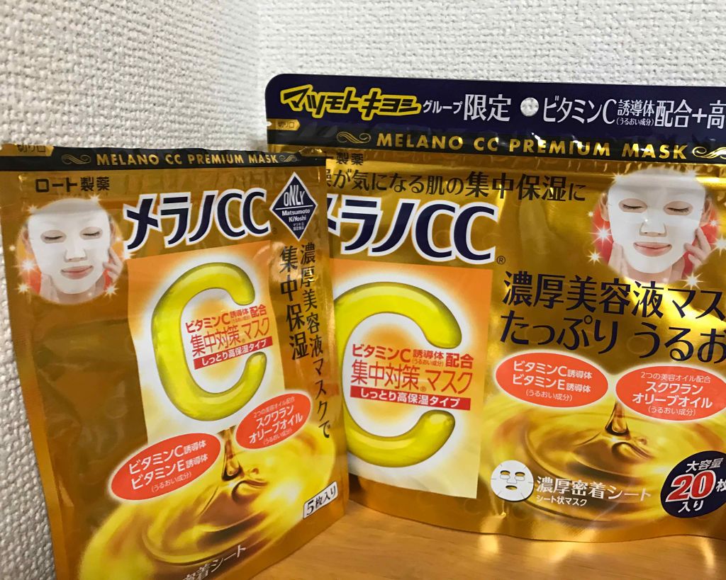 - 紫外線を浴びてしまった肌にもうるおいを。 美容液成分たっぷりうるおう、お得な大容量 「メラノCC 集中対策マスクMK しっとり高保湿タイプ」は、うるおい成分「ビタミンC誘導体(うるおい成分)」「ビタミンE誘導体(うるおい成分)」とふたつの美容オイル「スクワラン オリーブオイル(うるおい成分)」を配合したフェイスマスクです。 毎日のケアに使いやすい大容量20枚入り。 化粧水などで肌を整えた後にお使いください。美容液・乳液・クリーム等は、マスク使用後にお使いいただけます。 ロート製薬とマツモトキヨシホールディングスとの共同企画