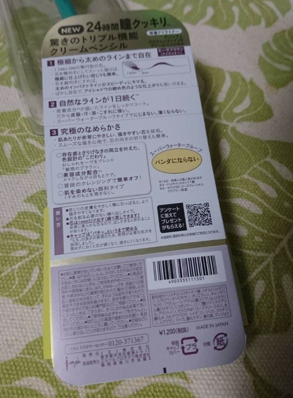 究極なめらかな描き心地 肌あたりが非常にやさしく なめらかに描ける細かい部分もストレスなく描ける 自然なラインが1日続く 密着成分が描いたラインをしっかりコート 皮脂・汗・涙・こすれに強く とにかくスルスル描けて落ちにくいのがお気に入りポイントです🙋♀️❤️