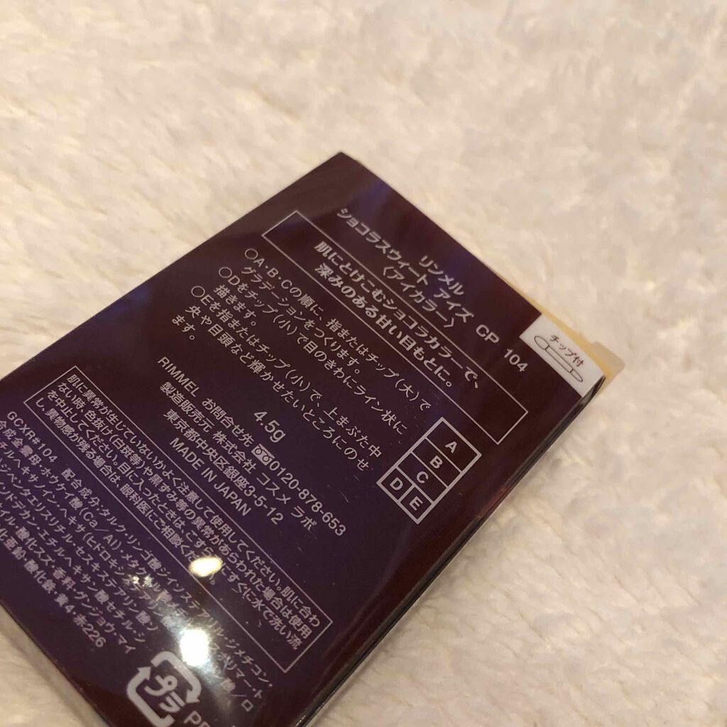 やっぱりショコラスウィート アイズは好き❤️ リニューアルして、パケが変わったけどこっちのショコラスウィート アイズをまだまだ愛していきたい(笑) 今日は、二段目と三段目を逆に使用しました。まぶたに、赤みカラーを乗せました。 お気に入りのリンメルです。