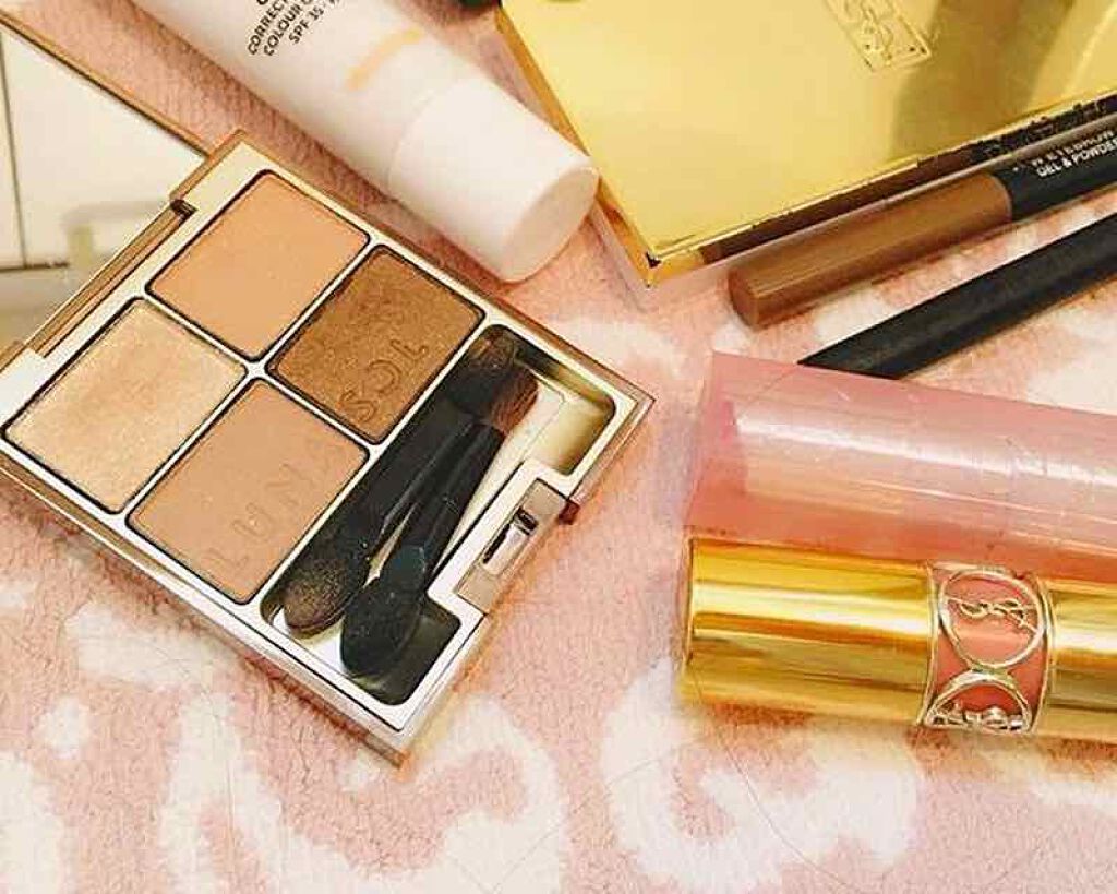 LUNASOLのアイシャドウパレットです❁⃘*.゚ ベージュ系の色味の中にオレンジが入っていて目元が暗くなりすぎず使いやすいです♪ 全てパール質感になっていて綺麗なツヤ感も出ます。 ブラウンすぎると目元が重たく見えるのでこのオレンジが入っているカラーだと明るく見えてよかったです!