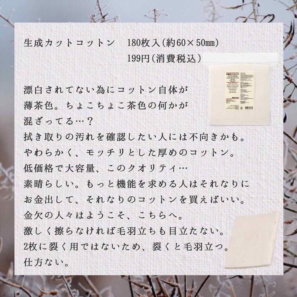 | 美容グッズ・美容家電ランキング第69位 | 毛羽立たないコットン。乳液の様なテクスチャでもしっかりパッティング出来ます! | 詳細を見る | |