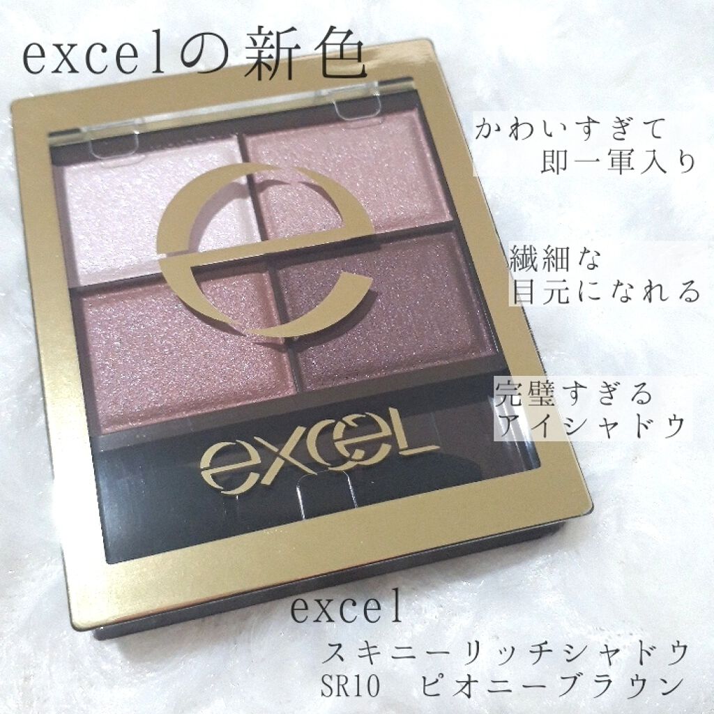 excelスキニーリッチシャドウSR10ピオニーブラウン¥1,650私のアイシャドウの原点といえばexcelのスキニーリッチシャドウ🌟昔自分で初めて買ったアイシャドウはたしかexcelさんだったなぁと思い出してお店に見に行って買った一色♡使い...