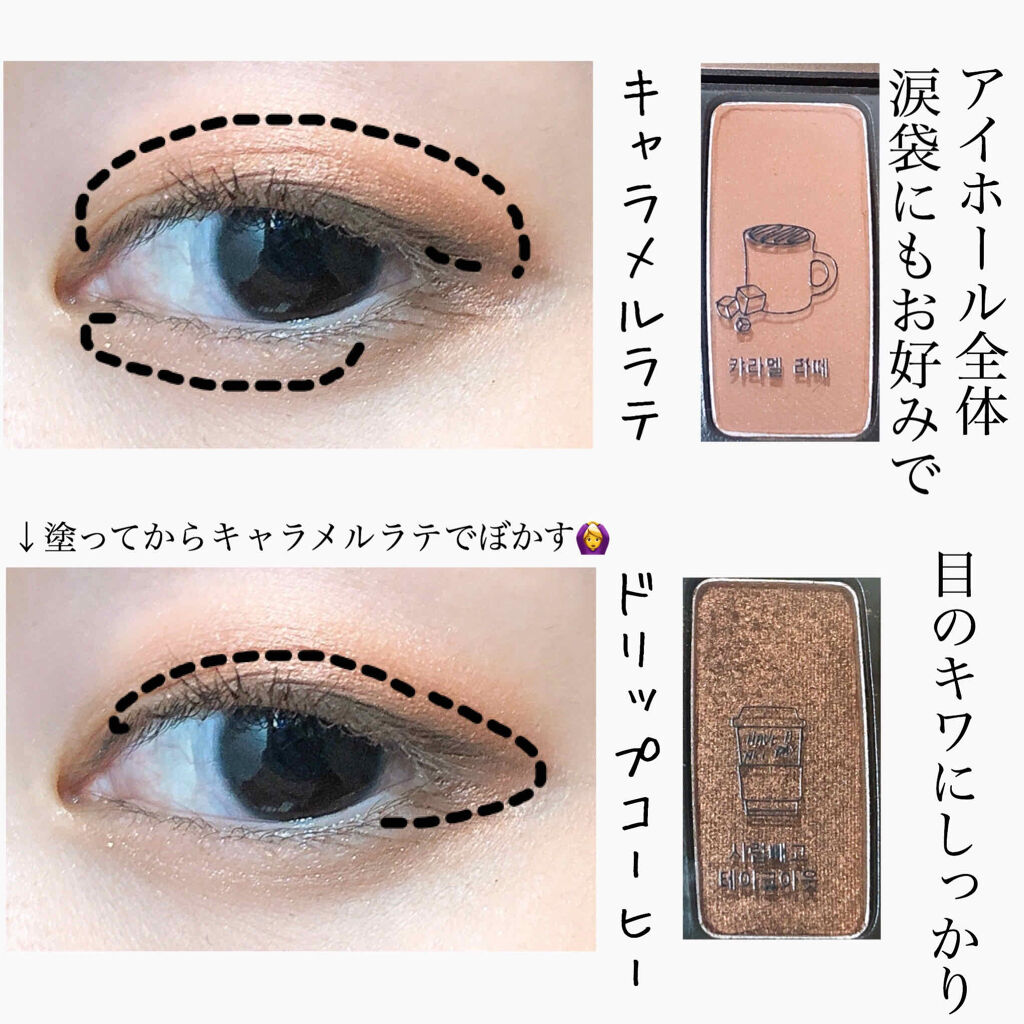 ☆ETUDEプレイカラーアイズカフェインホリック生産終了ETUDEHOUSE自体のアイシャドウパレットです。マット多めのパレットで、今回は左から5番目のピンクっぽいカラーを二重幅に塗り、右から3番目の赤茶色をアイラインのように使いました。発色...