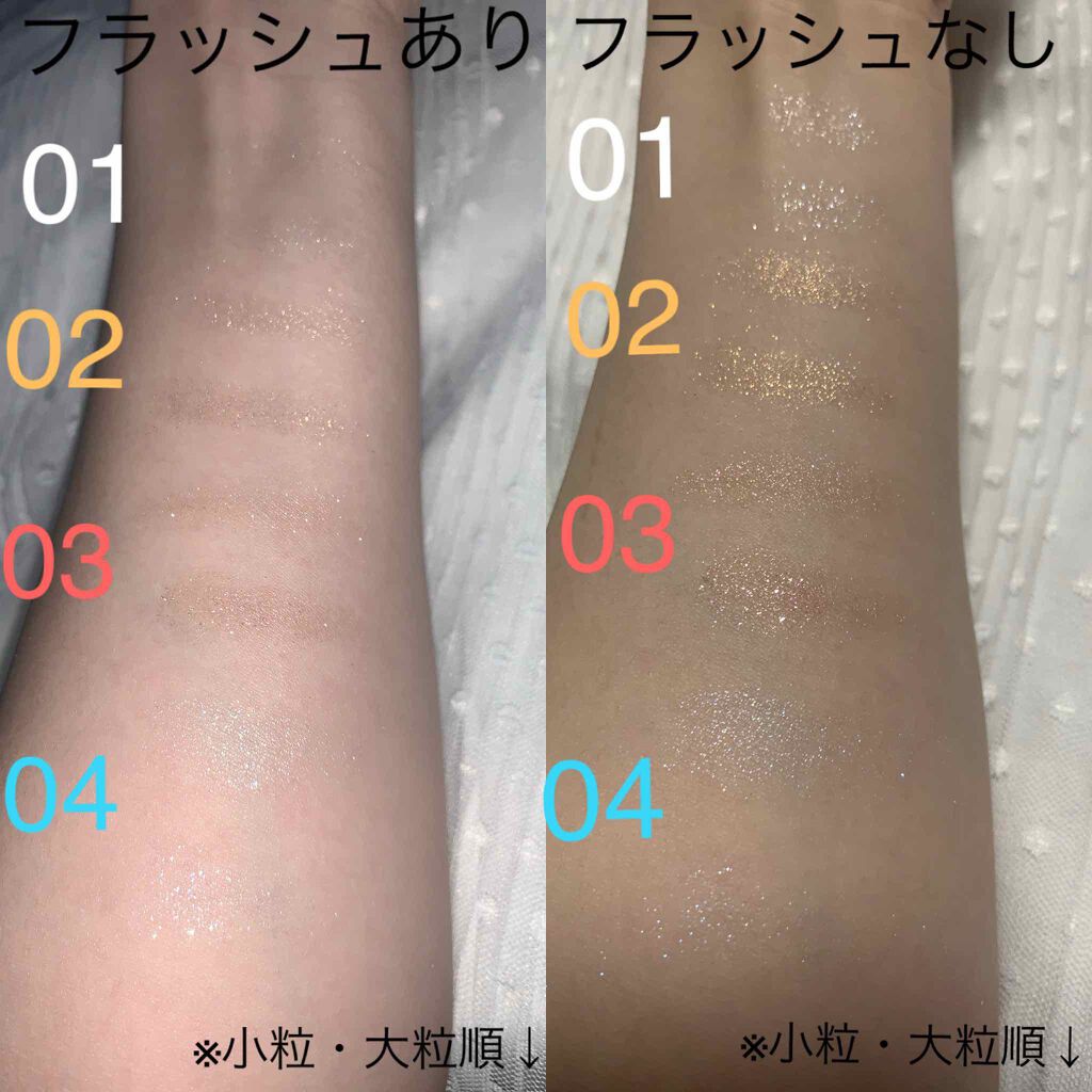 - ベース色が発色せずに、ラメだけをのせられるアイシャドウ。小粒と大粒のラメで、どんなメイクも理想の輝きに調節。「アイシャドウの上に重ねる」「アイシャドウの下に仕込む」「単品で使う」など、お好みで使えます。