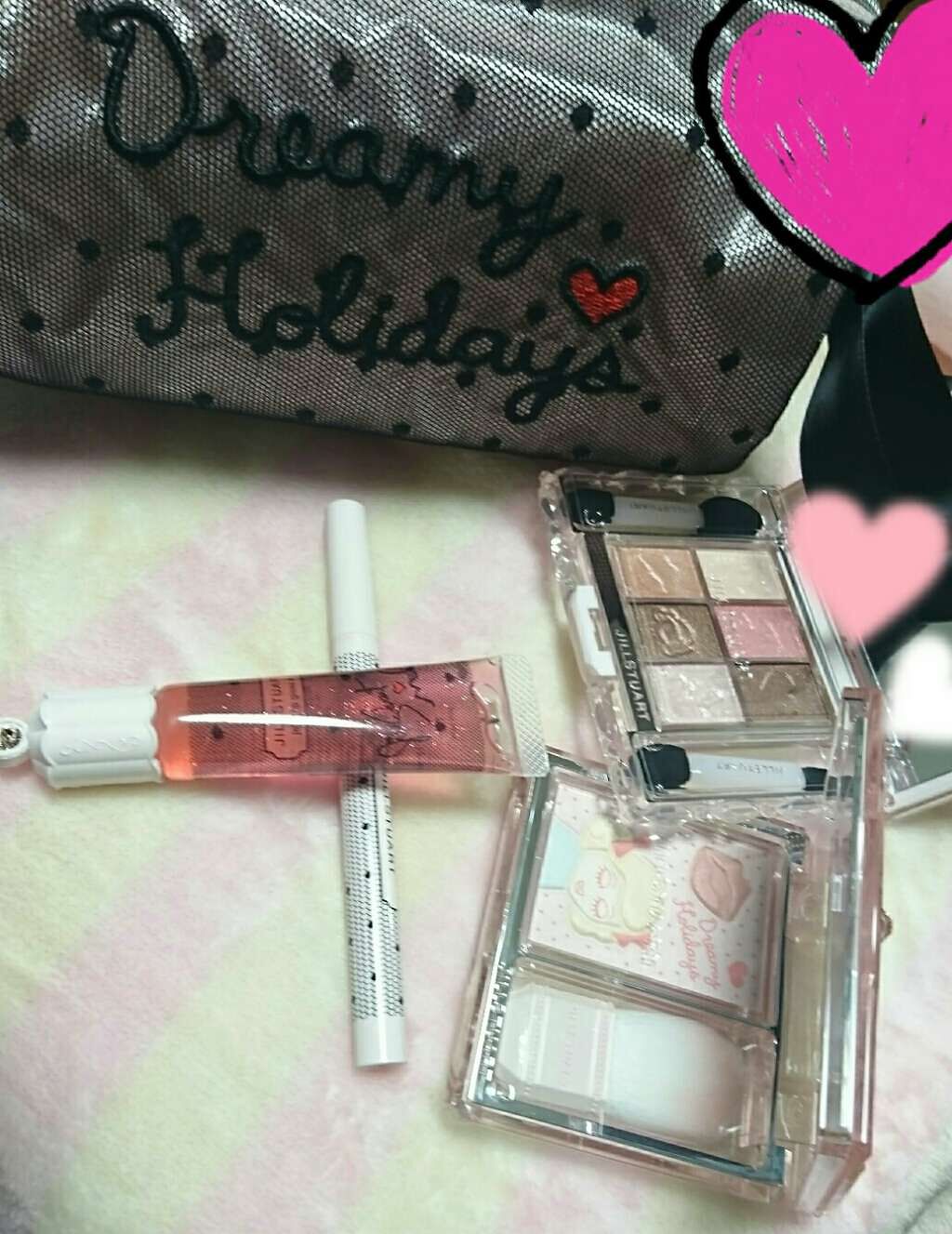 ポーチは縦幅があるからたくさんコスメを入れられます!! 香水はベリーの香りで手を洗ったあとも持続するほど長時間持続します!!🫐🍓 JILLSTUARTならではの発色の綺麗さがお気に入りです!✨️ とくにラメが繊細で綺麗でこのアイシャドウをつけてイルミネーションに行きたいなと思いました! 下地はピンクベースになっていて肌に塗るとトーンアップされます!!🩵 保湿力もあったのでこれから毎日使おうと思います!