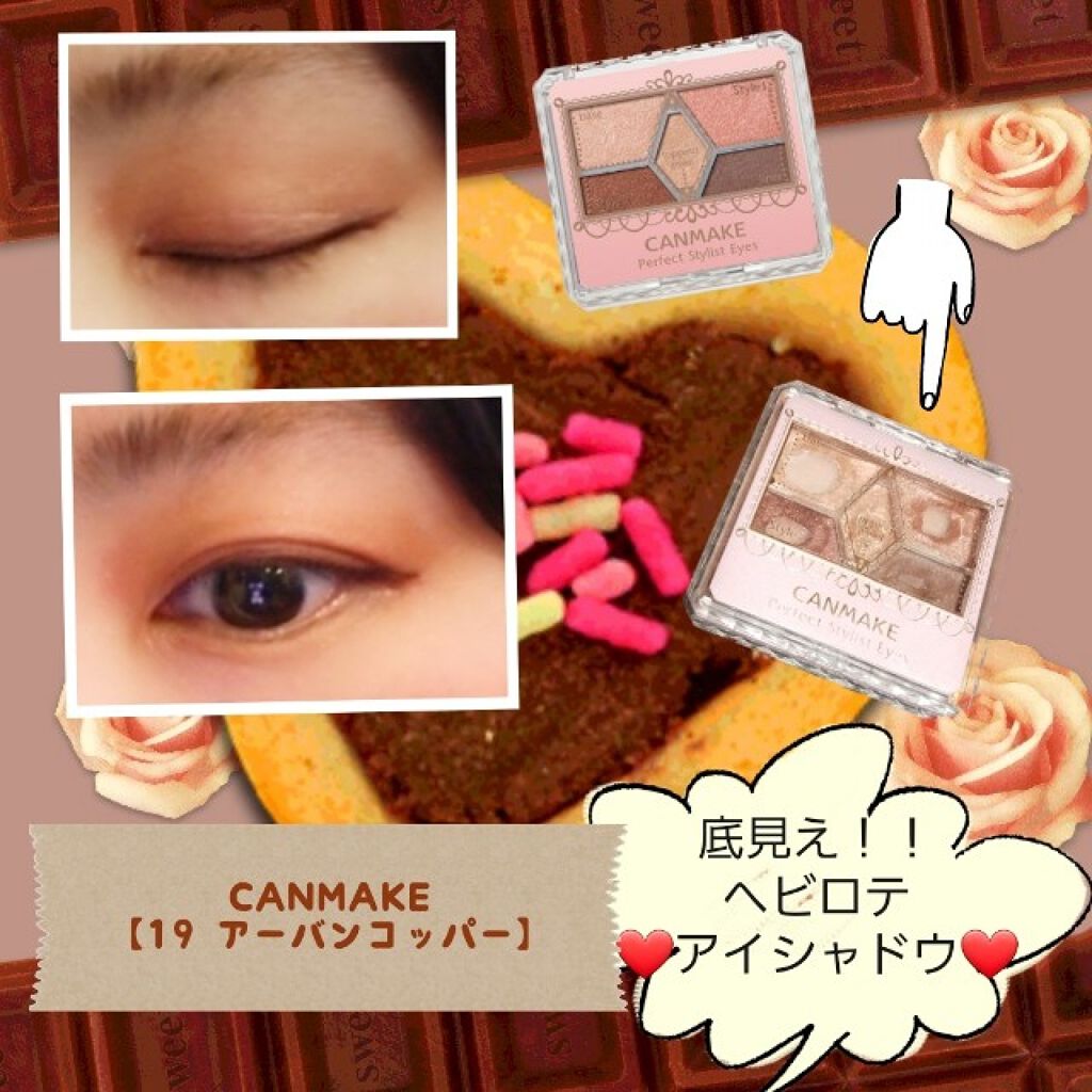 記録用<カラコン>MOLAK1monthダズルベージュ<アイシャドウ>キャンメイクパーフェクトスタイリストアイズNo.19アーバンコッパー(左上の色のみ)CLIOプロシングルシャドウG10...