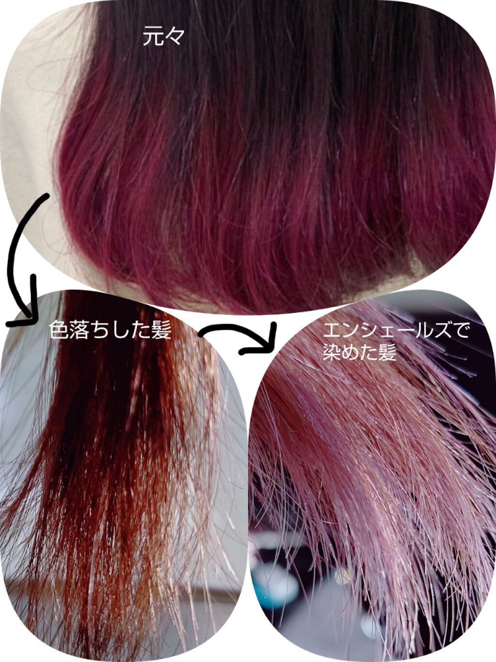 初めての口コミです!美容院で染めて色落ちしてきたけどお金が無い!自分でやってみよう!ということでエンシェールズ買ってみました。ちなみにブリーチ1回だけしてます。アッシュパープルとクリアをてきとーにまぜて手で染めた結果2枚目の右下のような色にな...