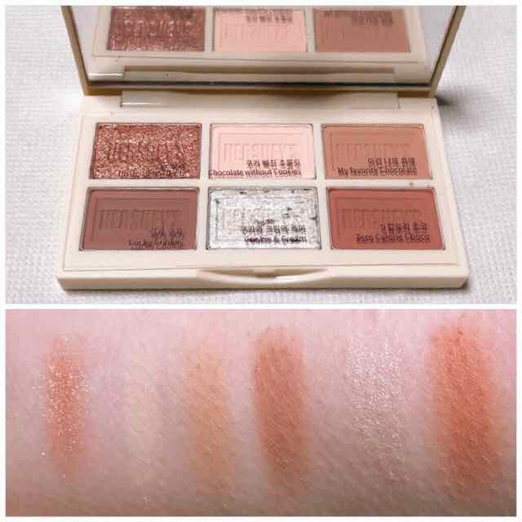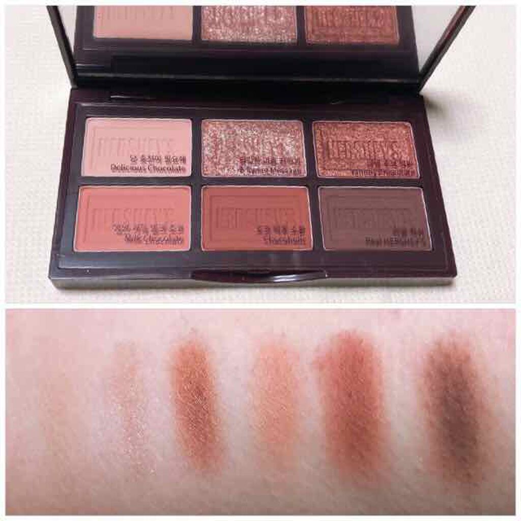 ☆ETUDEハーシープレイカラーアイズミニ見た目がチョコレートっぽくて可愛い🍫左上のベージュカラーをアイホールに、下の段真ん中を二重幅に、右下をアイラインの様に使いました。発色よく粉質は硬く粉崩れしない感じ。使うたびにアイシャドウの型押しが消...