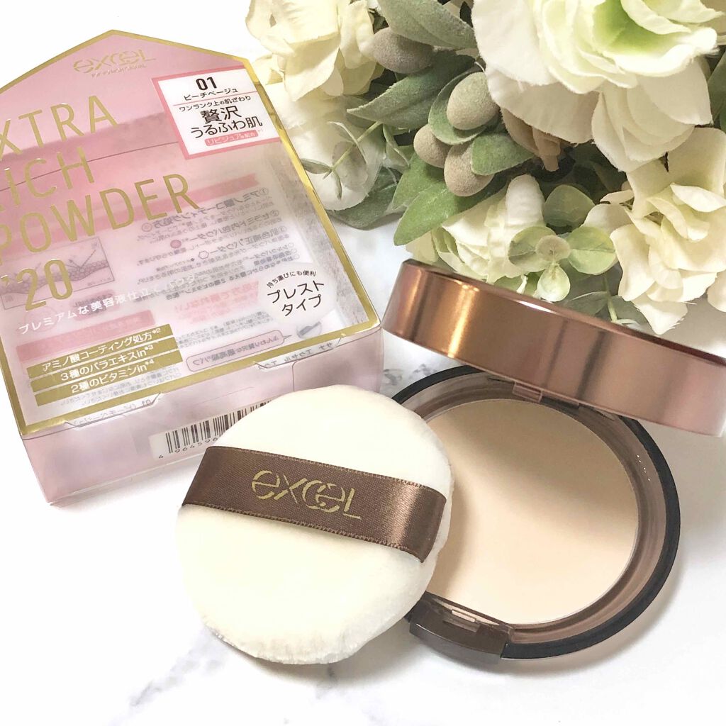 しっとり上品なツヤ肌に 【 #excel / #エクストラリッチパウダー la 】 自然な血色感を演出してくれる色味 大きな変化は無いから使いやすいと思いました ふんわりした仕上がりイメージです!!
