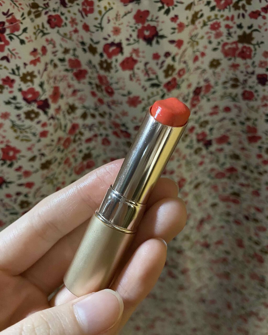 多幸感あふれるクリアなコーラル🩷 特に時間が経つと蛍光感がでてきちゃう。 THEピンクのリップを求めている人にピッタリ! ティッシュオフしても若干色は残ってる! おすすめの塗り方は、いつもよりも少し濃いめに塗ってから、ティッシュオフ!