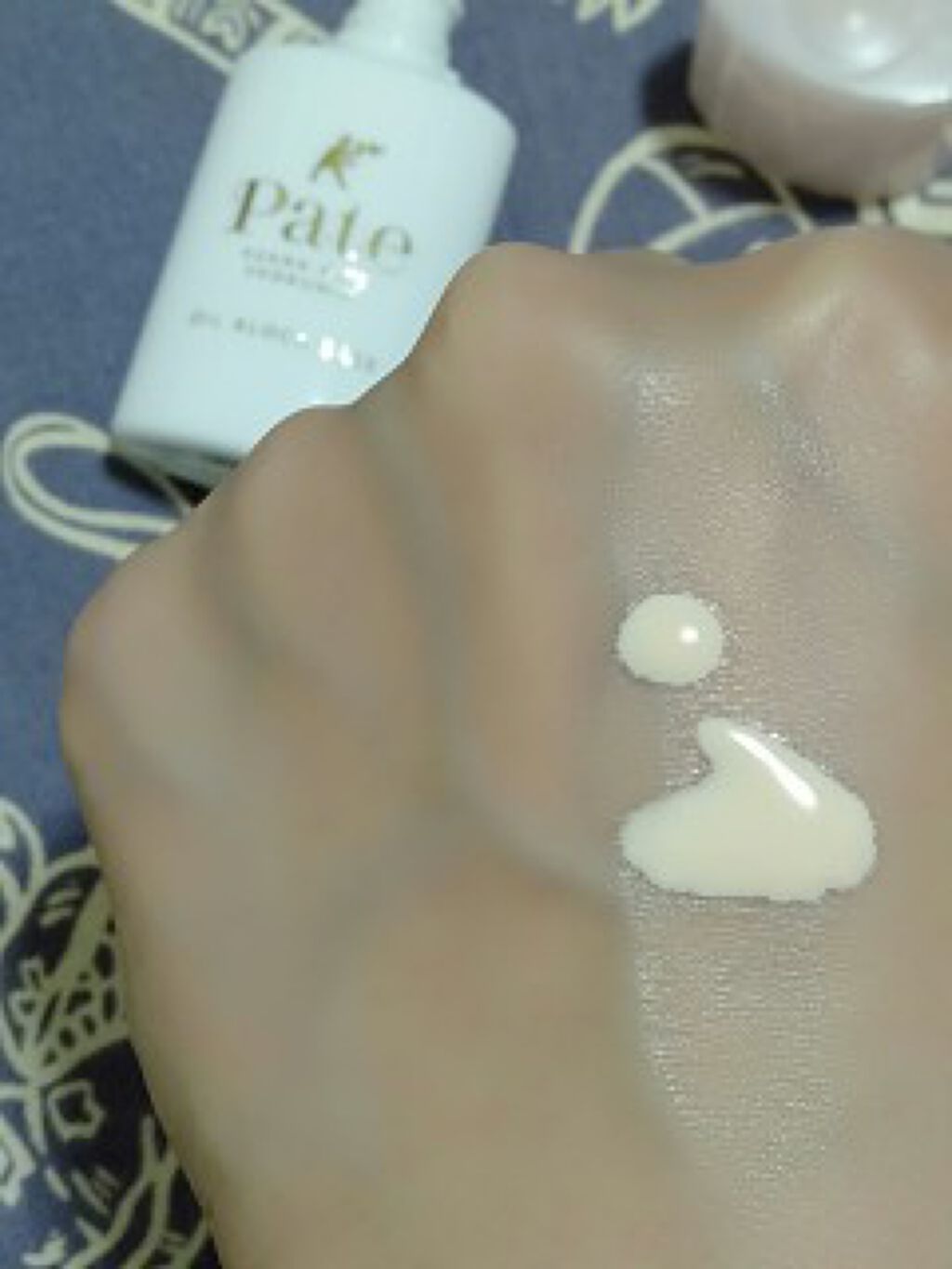 中身は、さらっとなめらかなテクスチャー。ほんのりピンクがかったベージュ系のようなカラー。のびがよく、しっとりとした使用感です。べたつきにくく、なじませやすい印象です。豆腐のなめらかなくちあたりをイメージするような使い心地でしょうか。(個人の体...