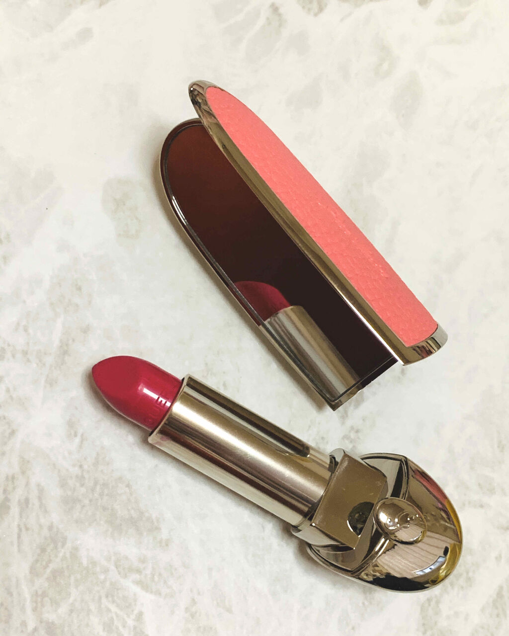 好きなカラーとケースを選んで自分だけのリップにカスタマイズ! ゲランのリップといえばキスキスシリーズも人気やけどこのルージュジェも自分の好みにカスタマイズできるから人気なアイテムの1つ。 上品なツヤがありひと塗りで厚みも出るのが特徴で、ケアリップと言うだけあってしっとりしたつけ心地が乾燥しやすい今の季節にめっちゃいい! 高級感のあるケースが目を惹くのでフォーマルな場面で使うのも◎ ちなみにケースからリップを引き抜くとケースの上部がポップアップしてダブルミラーが出現するんよ…!