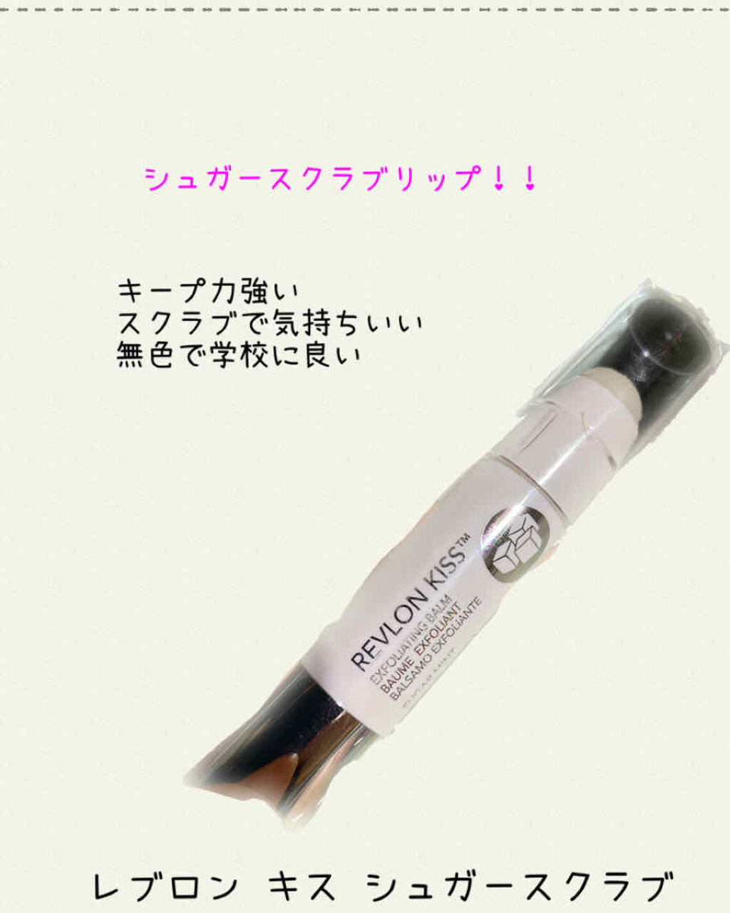 寝る前のリップケア。翌日薄皮ペロンってむけてぷるんってなるんよ。 使い心地がREVLONが一番好き。スクラブとバームの割合が悪いやつあったりするけど、今回はいい配分で文句なし。 シュガーミントが甘くていい香りだと思うー。まぁ好みですけどね。
