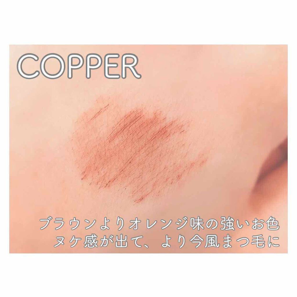 UZU/MOTEMASCARA™️コッパー こちらコッパーという色で普通のブラウンより 華やかで明るいライトブラウンになります! また、唯一パールが入っていて光や見る角度 などでも色が絶妙に変化し、これ1本で一気に 垢抜け感が出せちゃいます...