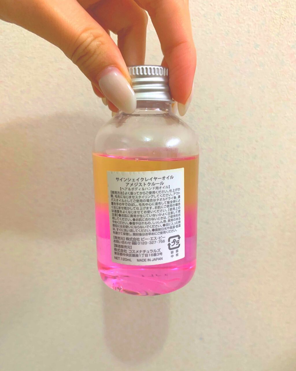 通常タイプを使っているのでこの2層タイプも購入してみました💗自然なツヤや濡れ髪、束感を演出できるスタイリングやボディオイル、ネイルオイルとしても使える✨ベタつかないので私は主にヘアケアと濡れ髪にするのに使っています。手に残ったのはそのままハン...