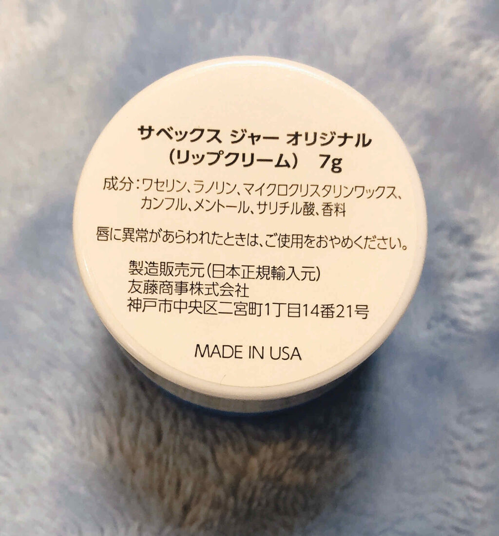 - サベックスはアメリカで設立され、唇の乾燥からくる悩みを抱えている人のために商品開発を行っております。 概要としては・唇を乾燥から守り、荒れを防ぐように・ベタつかないように・ムラ(唇の端に溜まる)にならないように・味(香り)へのこだわり・持ち運びしやすいように(軽量)・低価格での販売・アメリカ製(自社工場にて製造) オリジナルについては、長年にわたり愛されている商品で、発売当初から配合を変えず製造しています。ほのかに香るバニラの香りとほどよい清涼感で万人受けする香りです。