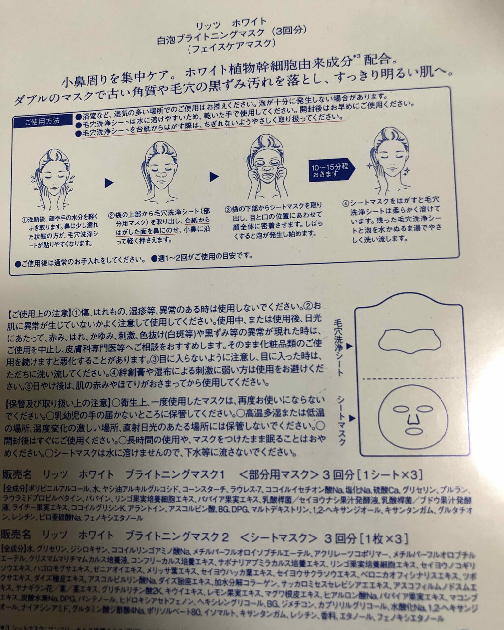 商品詳細情報リッツ ホワイト もこもこ白泡マスク